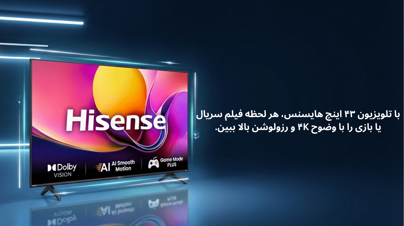 تلویزیون HISENSE A62QS 43 TV با فناوری AI 4K Upscaler؛ ارتقای هوشمند تصاویر تا مرز کیفیت 4K