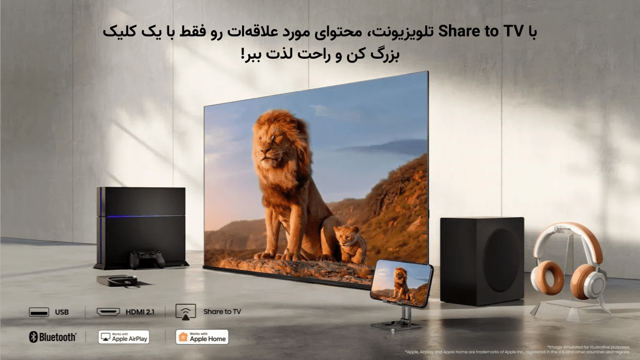 با Share to TV، همه چیز در دست شماست. میتوانید ویدئوها، عکسها و برنامهها را بدون تأخیر روی صفحه بزرگ تلویزیون ببینید و تجربهای لذتبخش و سریع از محتوا داشته باشید، درست همانطور که میخواهید.