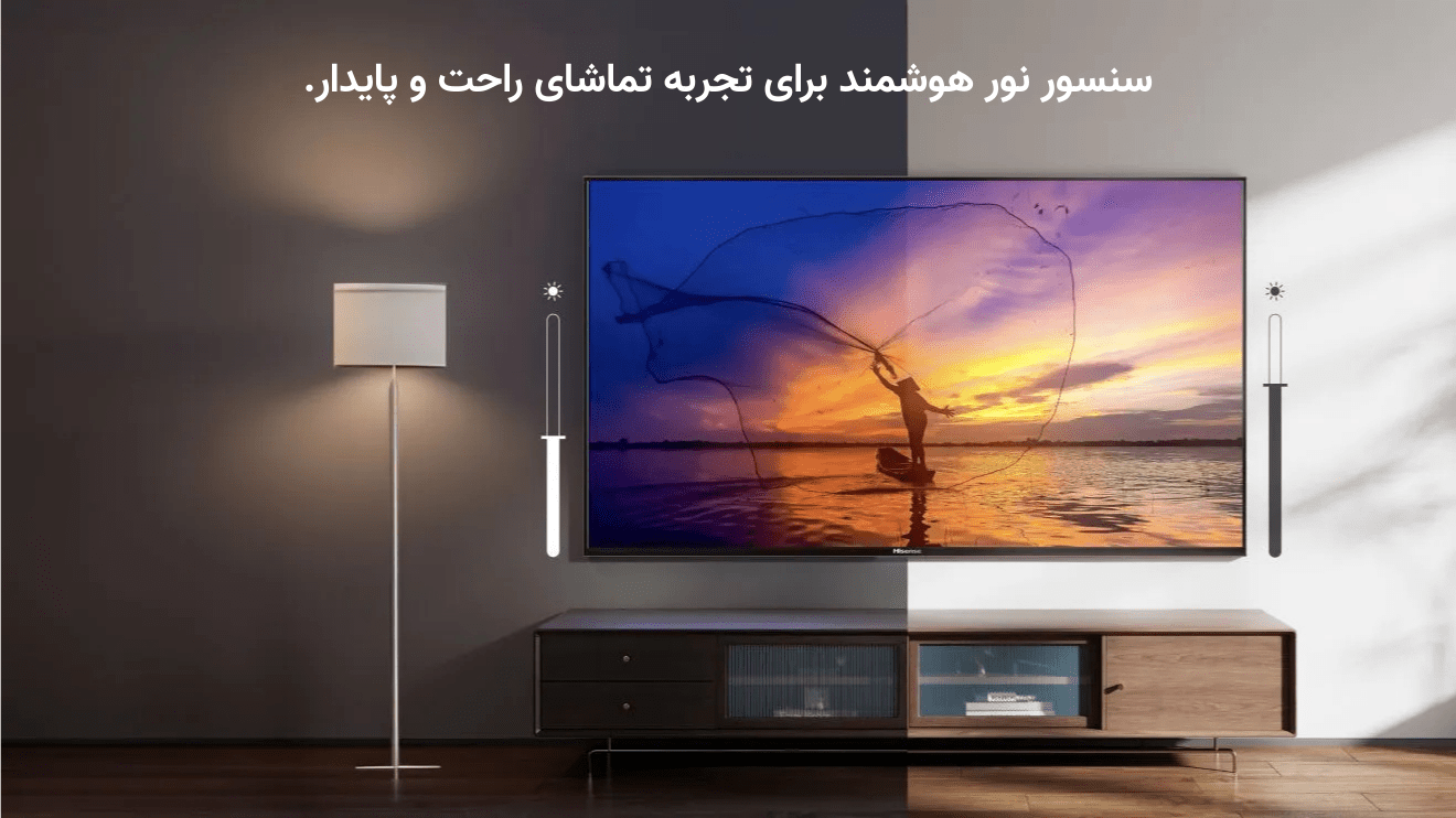 تلویزیون HISENSE A62QS 43 TV با سنسور نور هوشمند AI Light Sensor برای تماشای راحت و صرفهجویی انرژی