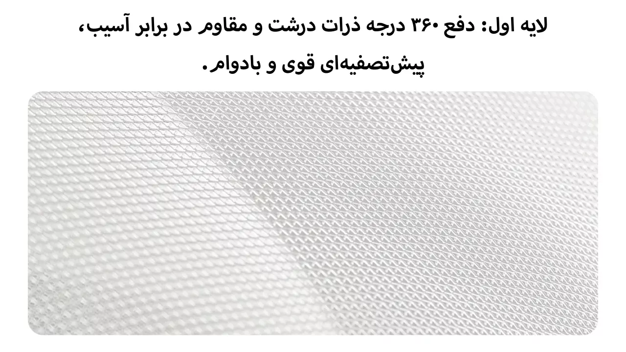 این عملکرد پیشگیرانه، دو دستاورد کلیدی به همراه دارد: اول، کیفیت ملموس هوای خروجی را از همان ابتدا ارتقا میدهد. دوم، با حذف ذرات درشت، فشار کاری و استهلاک لایه فیلتر HEPA (که مسئول جذب ذرات میکروسکوپی است) را بهطور چشمگیری کاهش میدهد. این امر مستقیماً بر طول عمر مفید فیلتر دستگاه تصفیه کننده هوا شیائومی مدل Xiaomi Smart Air Purifier 4 lite تأثیر گذاشته و در بلندمدت، منجر به صرفهجویی در هزینههای تعمیر، نگهداری و تعویض زودهنگام میشود. علاوه بر این، ساختار ویژه و مواد مقاوم بهکاررفته در این لایه، در برابر عوامل مخربی مانند رطوبت، چربی و مواد شیمیایی متداول نیز پایدار است و کارایی اولیه خود را برای مدت طولانیتری حفظ میکند. در نتیجه، این فیلتر نه تنها یک خرید، بلکه یک سرمایهگذاری هوشمندانه برای داشتن هوایی پاکتر و دستگاه تصفیههوایی بادوامتر است.
