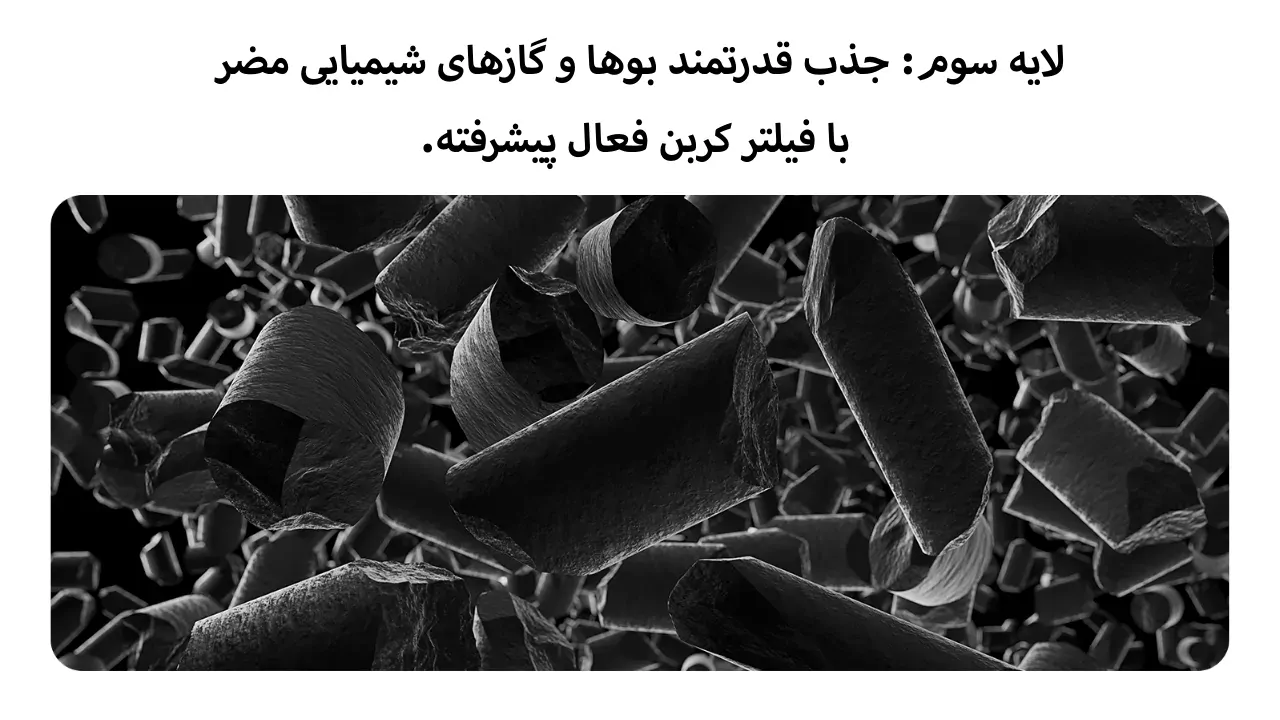 | مواد فیلتر شونده | فیلتر ازبین برنده بو و گاز سمی فیلتر اولیه فیلتر ضد آلرژی فیلتر هپا کربن فعال |