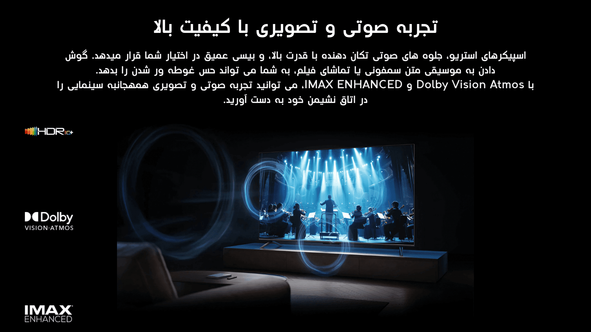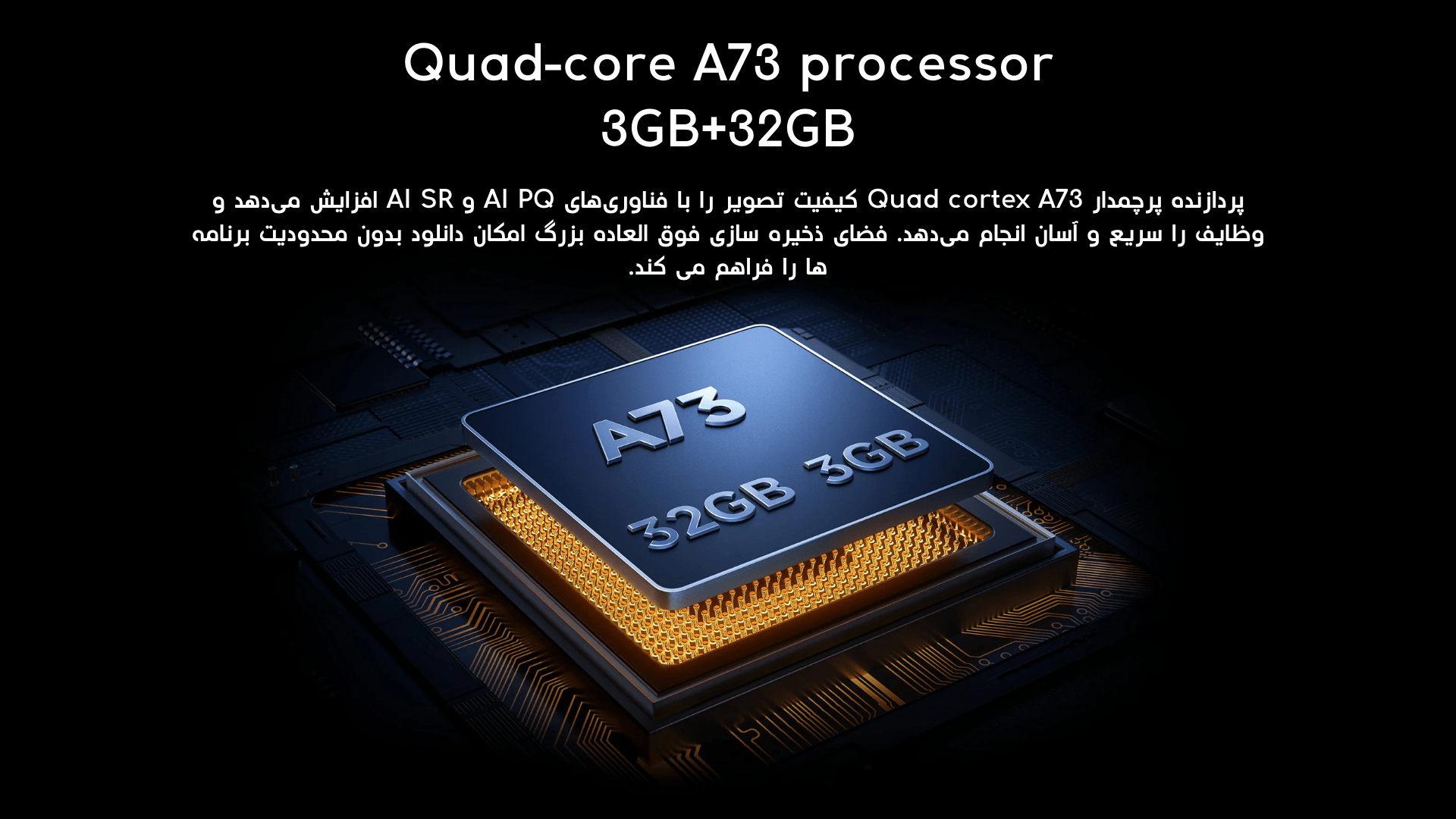 | چیپ ست: Cortex A73 Quad Core | سیستم صوتی: 25W (2 x12.5W) Dolby Atmos |