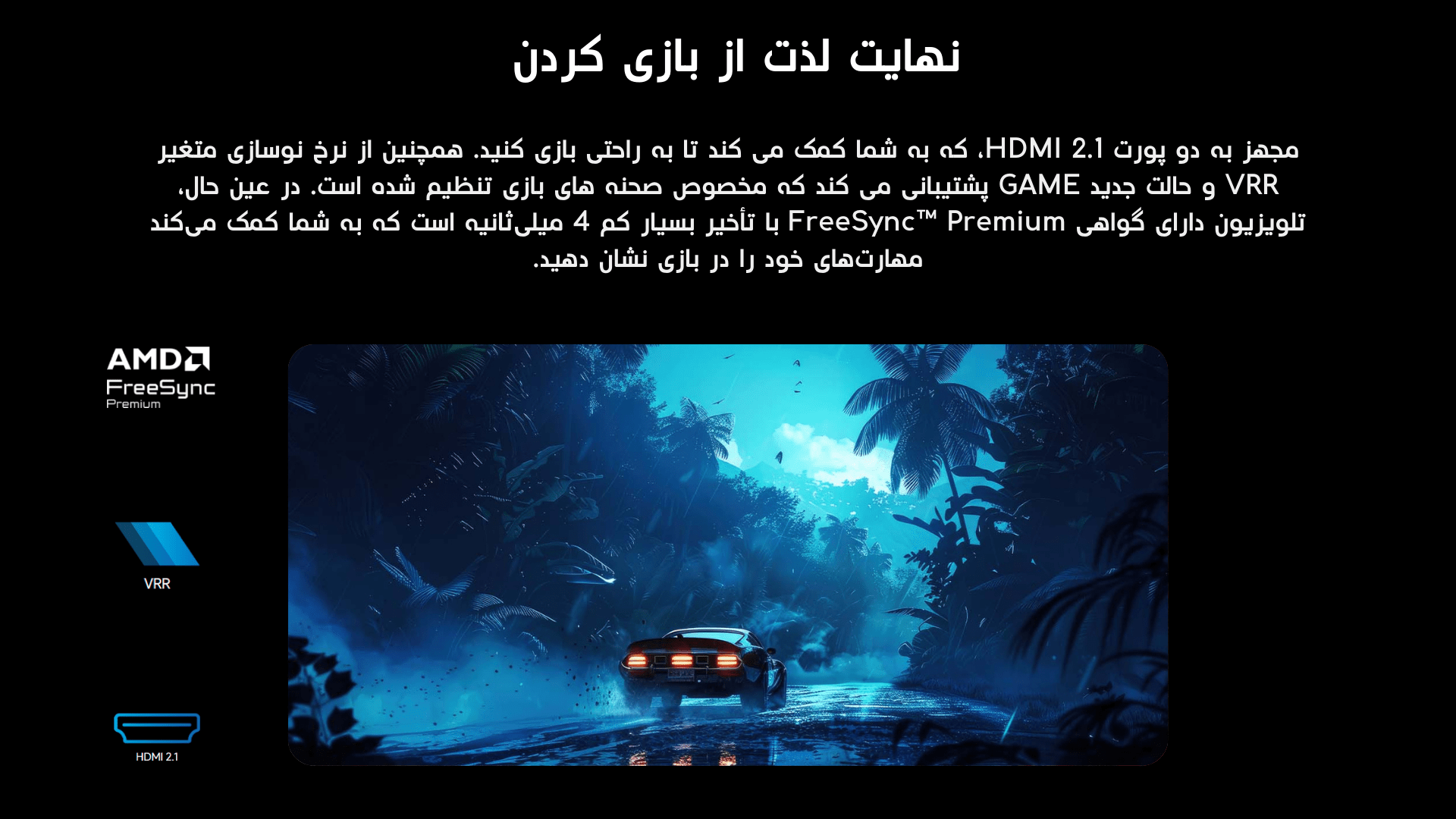 | بک لایت پنل: Direct Full Array Mini LED | قابلیت گیمینگ: Game Mode, AMD FreeSync, VRR |
