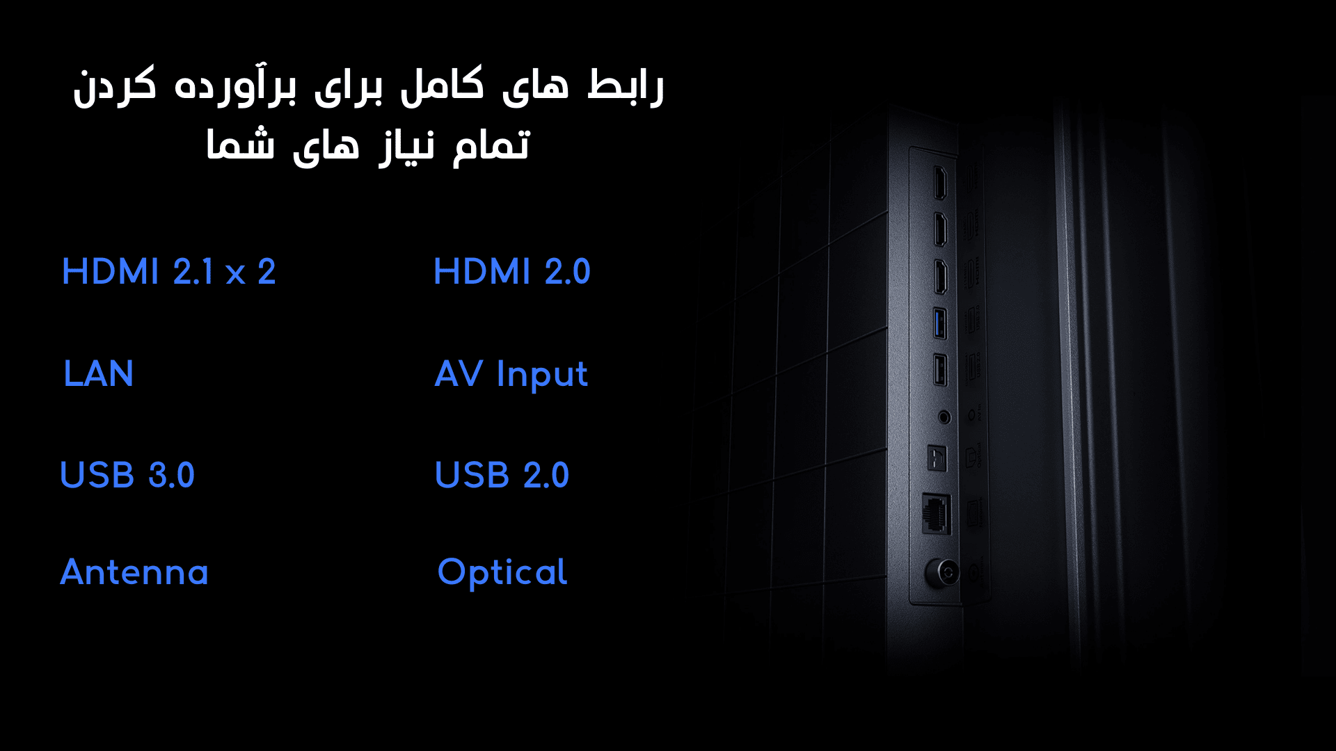 | گیرنده: DVB-S2, DVB-T2, DVB-C | پورت: 3xHDMI2.1 , 1xUSB 3.0, 1xUSB 2.0, Optical, LAN |