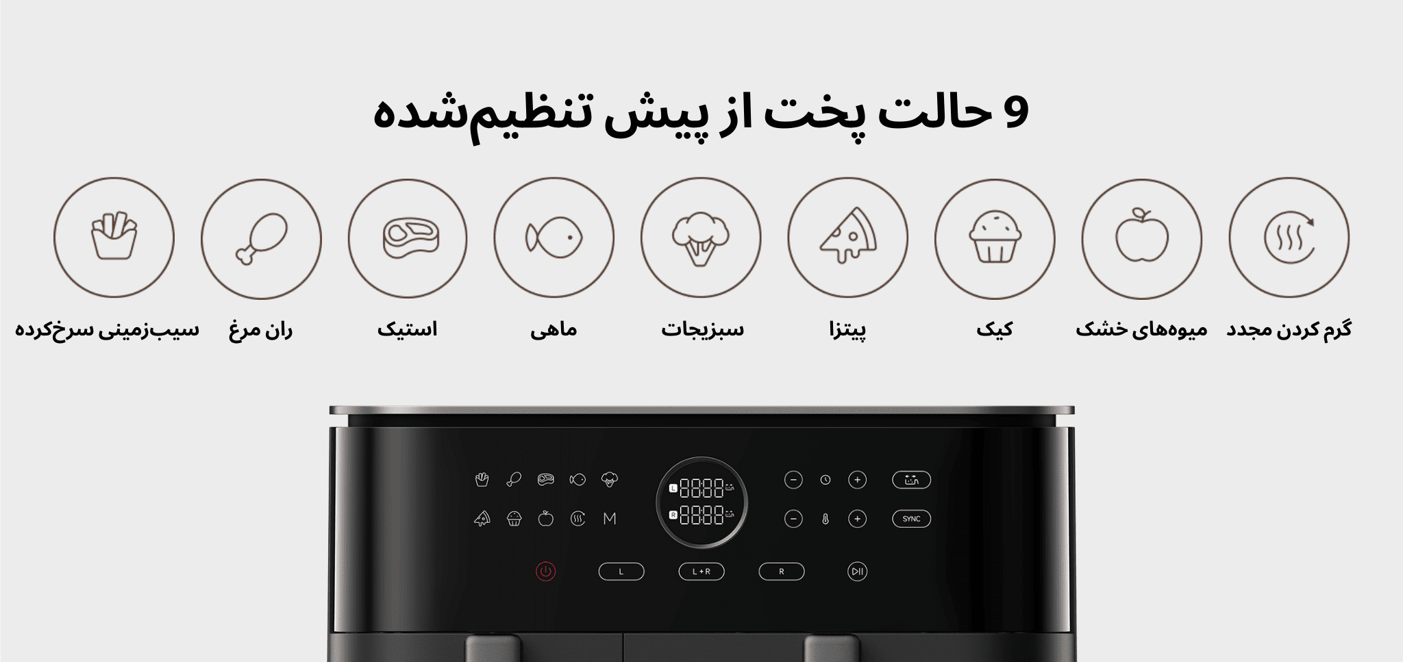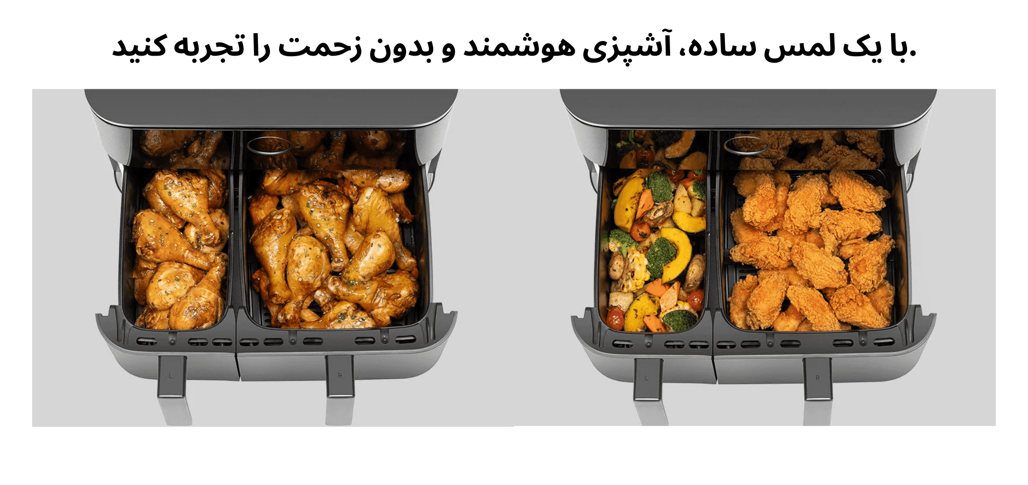 نه حالت پخت از پیش تنظیمشده و حالت سفارشی در سرخ کن Xiaomi Dual Zone Air Fryer 10L