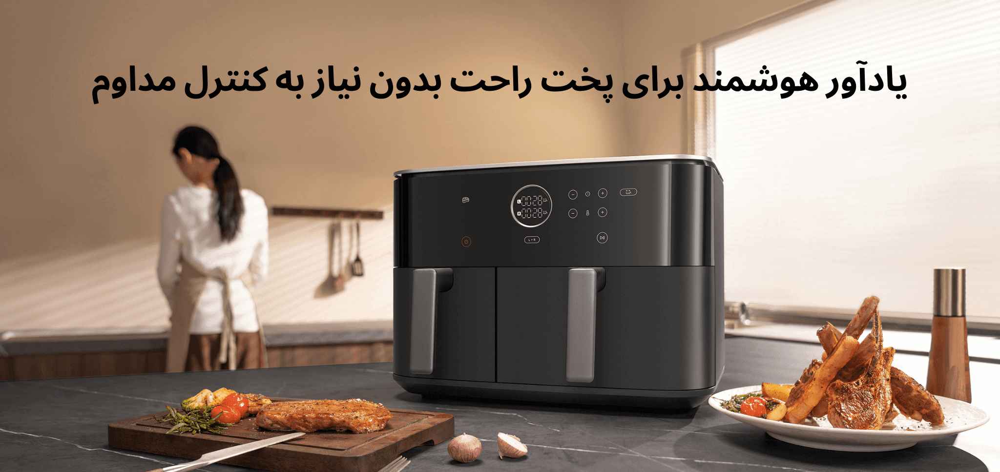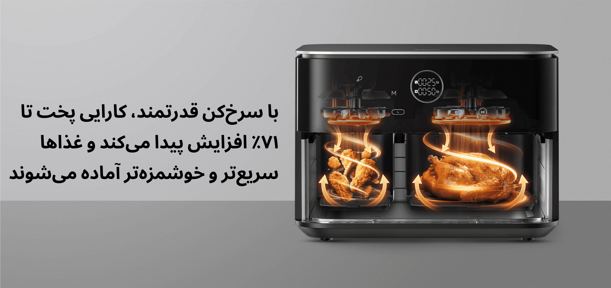 پخت بدون استرس با یادآور هوشمند در سرخکن دو محفظهای شیائومی ۱۰ لیتری