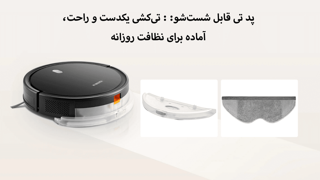 همراه با مخزن آب کارآمد، جارو رباتیک شیائومی Robot Vacuum E5 از پد تی قابل شستشو و قابل استفاده مجدد بهره میبرد که هم از نظر اقتصادی مقرون بهصرفه است و هم از نظر بهداشتی استانداردهای بالایی را رعایت میکند. کاربران میتوانند به راحتی این پدها را شسته و دوباره استفاده کنند که این امر هزینههای جانبی نظافت را کاهش میدهد. جارو رباتیک شیائومی e5 با ترکیب این دو ویژگی، راهحلی ایدهآل برای برآورده کردن نیازهای روزانه نظافت کف خانهها و آپارتمانها ارائه میدهد.