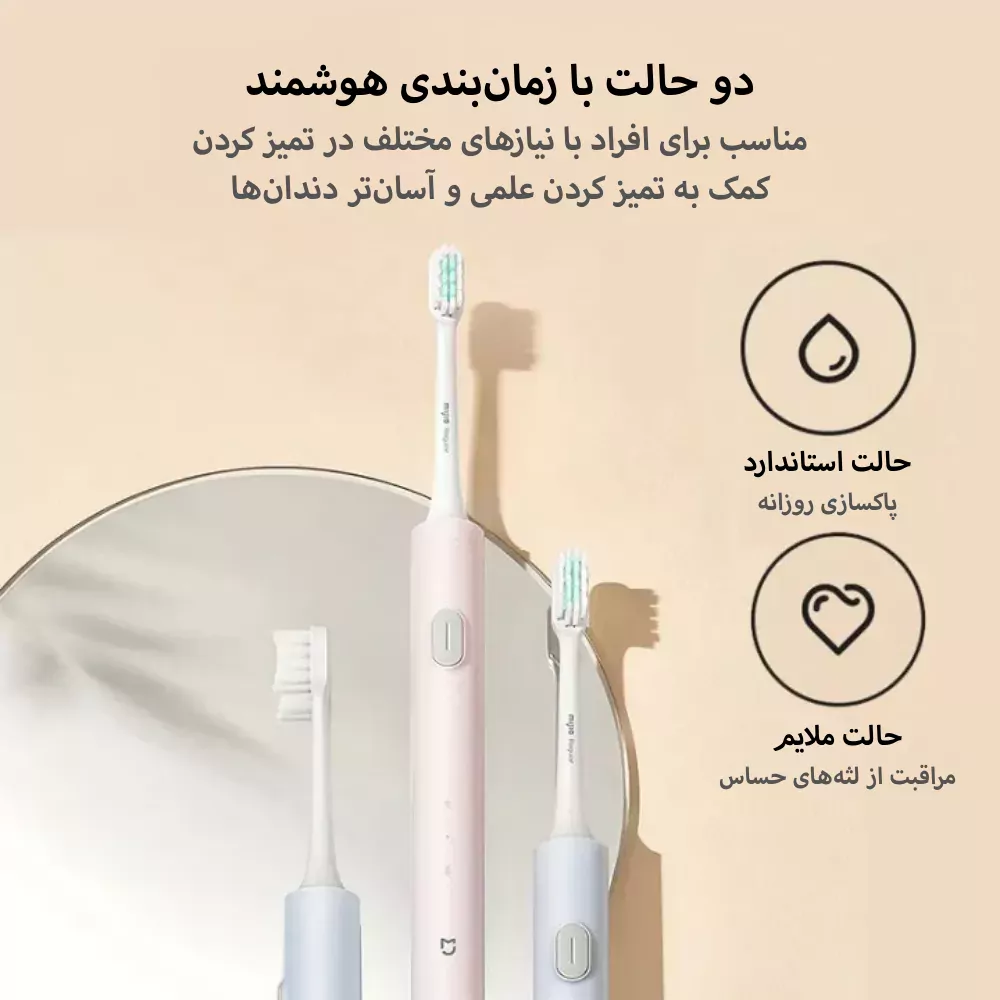 یکی از دلایلی که خرید مسواک برقی T200 را به انتخابی هوشمندانه تبدیل میکند، ویژگیهای مدیریت زمان آن است. این مسواک دارای تایمر هوشمند ۲ دقیقهای است که پس از پایان زمان استاندارد مسواک زدن، دستگاه را بهصورت خودکار خاموش میکند. همچنین هر ۳۰ ثانیه با یک مکث کوتاه به شما هشدار میدهد که ناحیه شستشو را تغییر دهید. علاوه بر این، با داشتن استاندارد ضدآب IPX7، میتوانید بدون نگرانی از نفوذ رطوبت، کل بدنه مسواک را زیر شیر آب شسته و تمیز کنید.