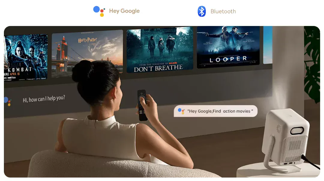 ویدو پروژکتور شیائومی مدل Xiaomi WANBO T2 Ultra با پشتیبانی از دستیار صوتی Google Assistant تجربهای هوشمند و سریع از کنترل دستگاه را برای شما فراهم میکند. فقط با گفتن فرمان صوتی خود، میتوانید فیلم مورد علاقهتان را پخش کنید، اپلیکیشنها را باز کنید یا حتی میزان صدا را تنظیم کنید. این ویژگی باعث میشود کار با ویدئو پروژکتور ونبو T2 Ultra سادهتر و جذابتر از همیشه شود، زیرا امکان کنترل کامل از طریق صدا، بدون نیاز به ریموت در دسترس شماست.