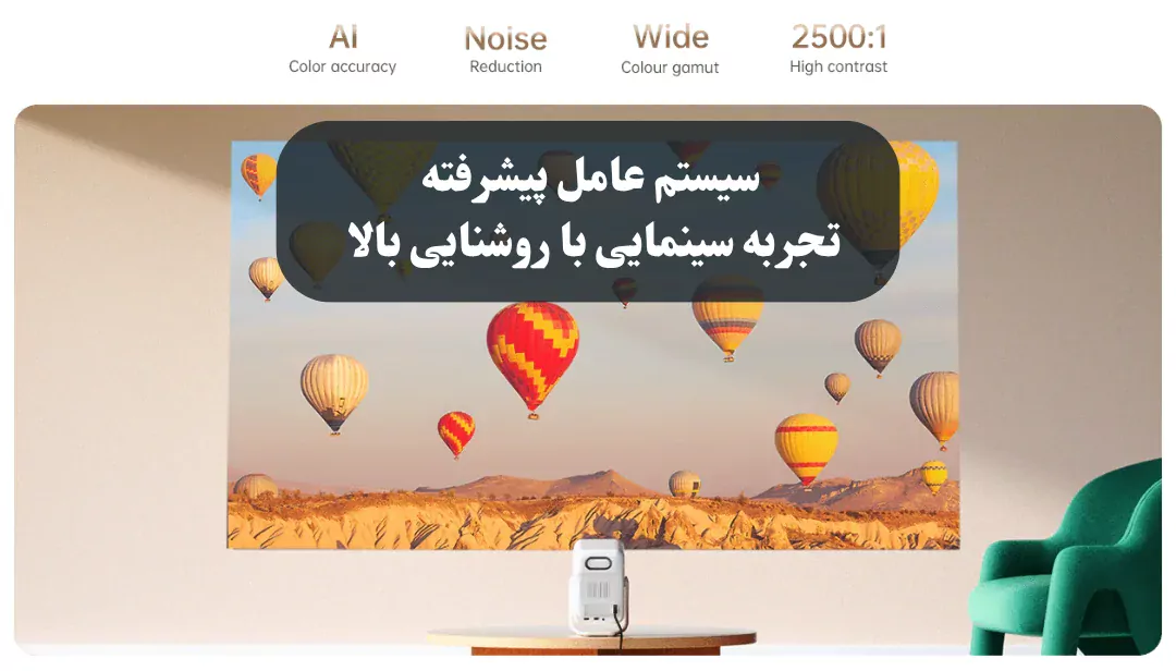 در این پروژکتور هوشمند شیائومی، موتور تصویری هوشمند به صورت لحظهای کیفیت تصویر را بهینه میکند تا روشنایی، کنتراست و غنای رنگها متناسب با محتوای نمایش داده شده تنظیم شوند. نتیجه این فرایند، نمایش تصاویری پویا با رنگهای عمیق و واقعگرایانه است که تجربهای نزدیک به سینما را در خانه خلق میکند. اگر به دنبال یک پروژکتور کوچک اما قدرتمند با عملکرد تصویری بینقص هستید، مدل ونبو T2 Ultra بهترین گزینه در میان همردههای خود است.