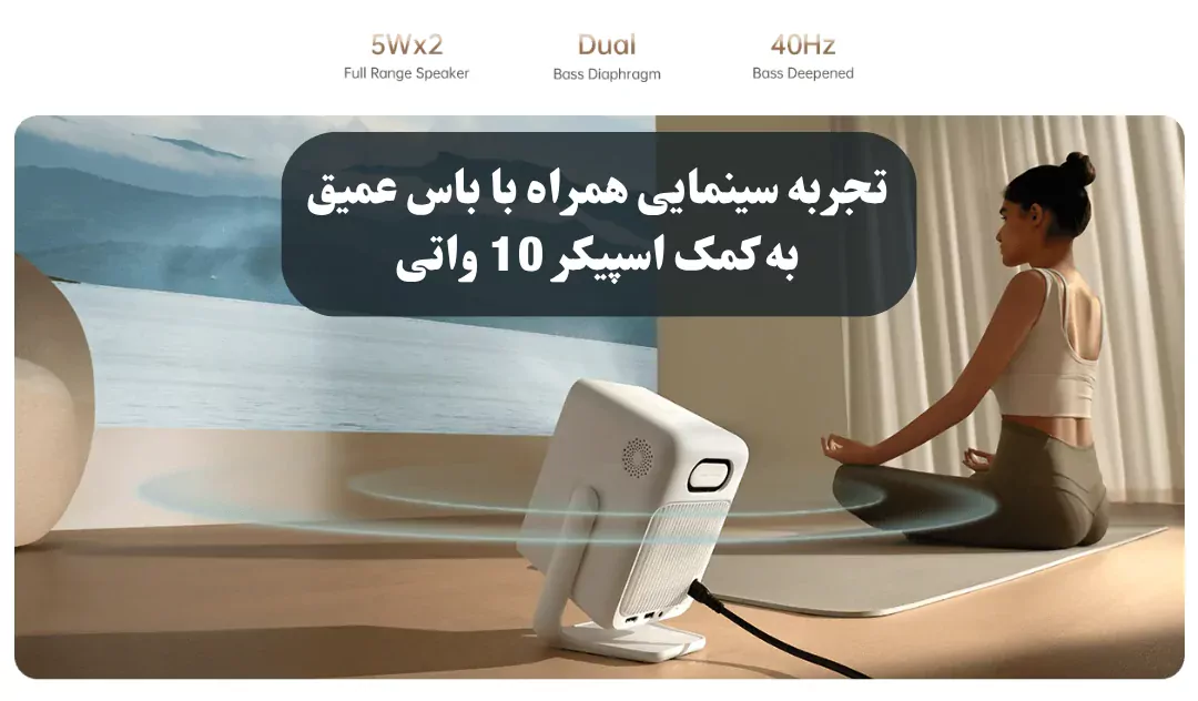 ویدیو پروژکتور شیائومی مدل Xiaomi WANBO T2 Ultra فقط در تصویر خیرهکننده نیست، بلکه از نظر کیفیت صدا نیز جهشی بزرگ را تجربه کرده است. این دستگاه با اسپیکر قدرتمند 10 وات فولرنچ و طراحی دو دیافراگم باس تقویتشده، صدایی عمیق، پرقدرت و فراگیر تولید میکند. ترکیب صدای قوی با وضوح تصویر بالا باعث میشود تجربهای سینمایی و واقعی از تماشای فیلمها و اجرای بازیها در خانه داشته باشید. این پروژکتور هوشمند شیائومی بهگونهای طراحی شده تا حتی بدون نیاز به اسپیکر خارجی، فضای صوتی غنی و پویا فراهم کند.