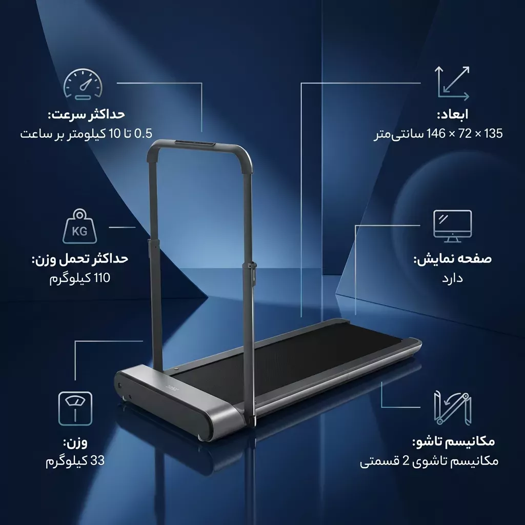 این دستگاه که نسخه تکاملیافته سری R1 است، با طراحی “2 در 1” خود یکی از پرفروشترین گزینهها برای آپارتمانهای مدرن محسوب میشود. در بررسی واکینگ پد R2، ما با دستگاهی روبرو هستیم که با پایین آوردن دستگیره به یک واکینگ پد کاملاً تخت برای زیر میز تبدیل میشود و با بالا آوردن آن، نقش یک تردمیل خانگی کامل را ایفا میکند.