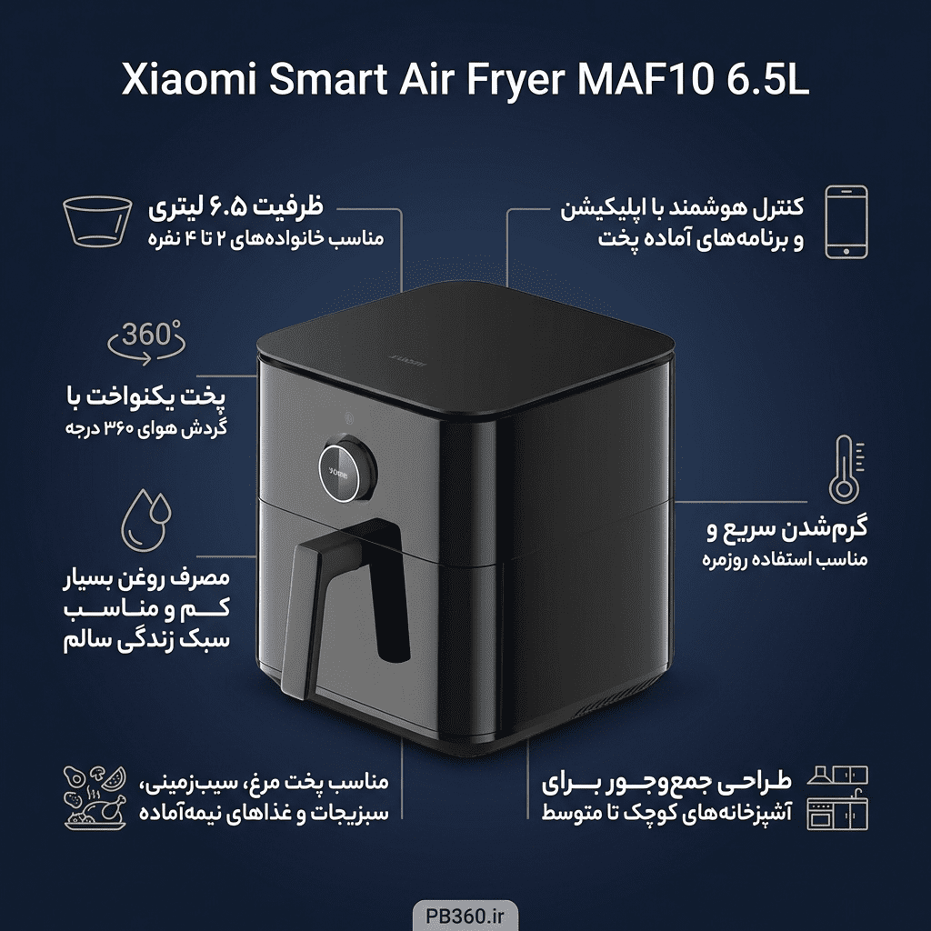 Xiaomi Smart Air Fryer MAF10 6.5L؛ هواپز هوشمند ۶.۵ لیتری با کنترل اپلیکیشن