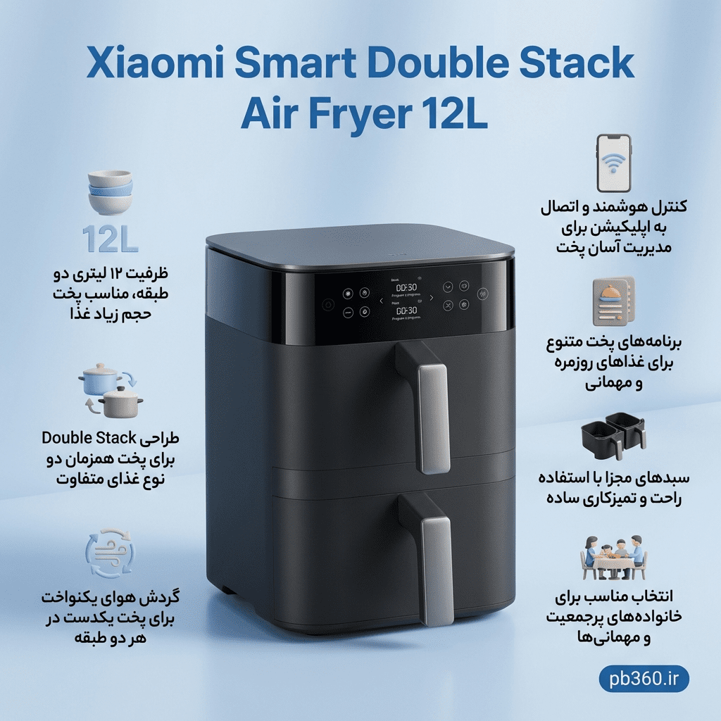 Xiaomi Smart Double Stack Air Fryer 12L؛ سرخکن دو طبقه ۱۲ لیتری با ظرفیت بالا
