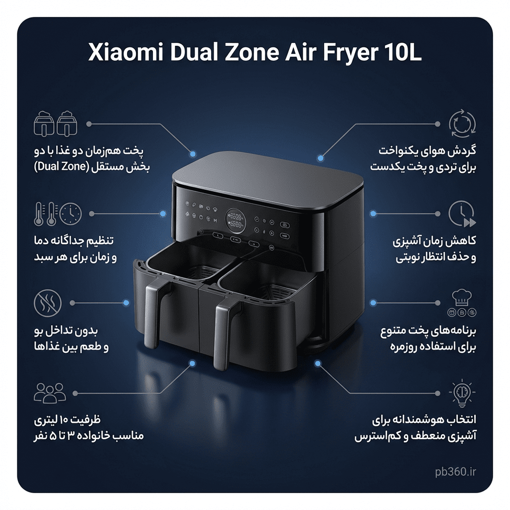 Xiaomi Dual Zone Air Fryer 10L؛ سرخکن دوگانه ۱۰ لیتری با کنترل مستقل هر بخش