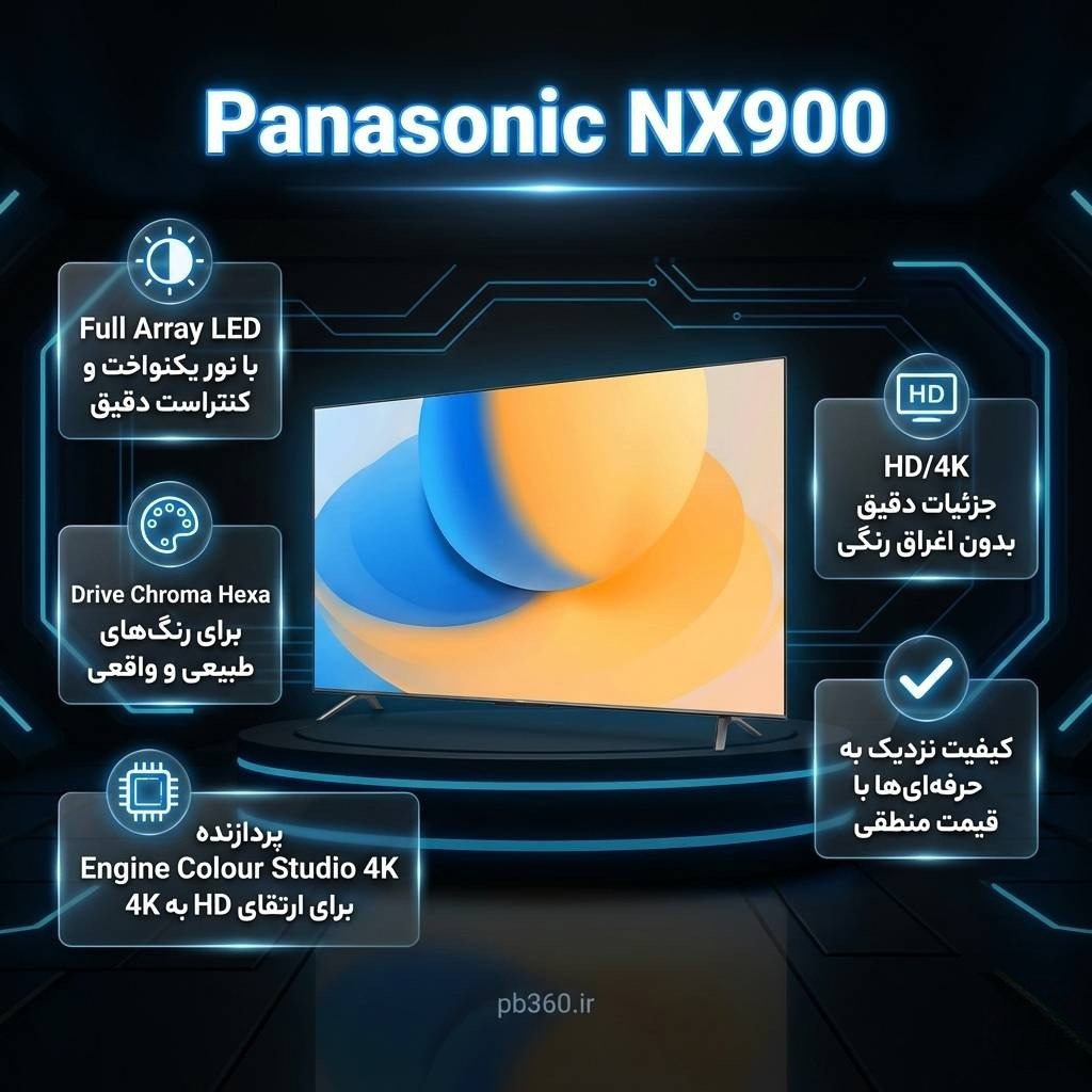 مدل Panasonic NX900 شاید برچسب Mini LED نداشته باشد، اما اصلاً تلویزیون معمولیای نیست؛ این مدل با بهرهگیری از پنل Full Array LED واقعی تصویری با کنتراست دقیق، نوردهی یکنواخت و جزئیات قابلاعتماد ارائه میدهد. NX900 برای کسانی ساخته شده که بودجه پرچمدارها را ندارند اما همچنان به کیفیت تصویر بالا، رنگهای طبیعی و تجربهای نزدیک به تلویزیونهای حرفهای اهمیت میدهند؛ انتخابی منطقی برای کاربرهایی که کیفیت واقعی را به عدد و عنوان ترجیح میدهند.